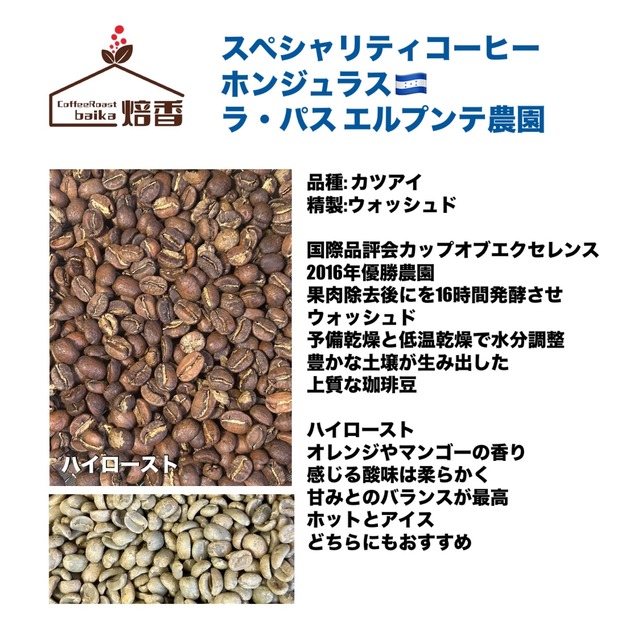 定番スペシャリティコーヒー 100g ホンジュラス ラパス エルプンテ農園 品種: カツアイ 精製:ウォッシュド 国際品評会カップオブエクセレンス 2016年優勝農園 果肉除去後にを16時間発酵させ ウォッシュド 予備乾燥と低温乾燥で水分調整 豊かな土壌が生み出した 上質な珈琲豆 ハイロースト オレンジやマンゴーの香り 感じる酸味は柔らかく 甘みとのバランスが最高 ホットとアイス どちらにもおすすめ ※粉でご注文の方へ 通常フィルター用の 中挽 極細〜粗挽まで変更対応可能ですので別途ご相談ください 基本はクリックポスト発送です(ポストイン) 他商品のご注文次第で 宅急便コンパクトまたはゆうパック発送あり